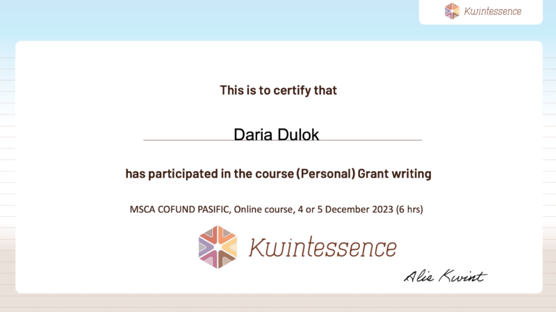 5 listopada 2023 r. miałam możliwość uczestniczyć w warsztacie online na temat pisania naukowych wniosków grantowych. Warsztat odbył się w ramach programu PASIFIC Polskiej Akademii Nauk. Prowadząca, Alie Kwint, przedstawiła praktyczne aspekty pisania wniosków grantowych, a dzięki ćwiczeniom w grupie miałam możliwość rozwinąć swoje umiejętności i lepiej zrozumieć, jak efektywnie napisać wniosek o grant badawczy.