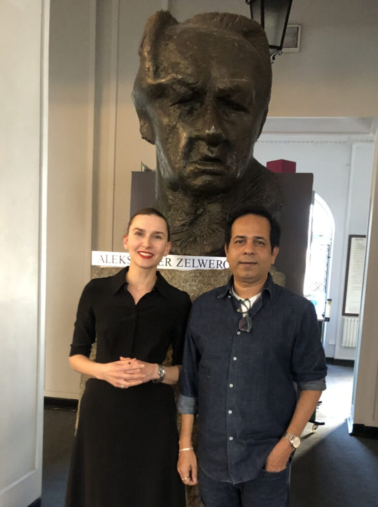 W czerwcu miałam ogromną przyjemność spotkać się z rektorem National School of Drama in India, szkoły teatralnej z siedzibą w New Delhi. Spotkanie odbyło się w murach Akademii Teatralnej im.  Aleksandra Zelwerowicza w Warszawie, której jestem absolwentką i wykładowczynią. Rektor Chittaranjan Tripathy odwiedził Akademię w Warszawie i filię w Białymstoku. Dyskutowaliśmy o indyjskich eposach, hinduizmie, a także roli sztuki w naszym życiu. Wymieniliśmy spostrzeżenia dotyczące tradycji nauczania aktorstwa i wiedzy o teatrze w Polsce i Indiach. Jednakże najwięcej czasu poświęciliśmy "Natjaśastrze", czyli Traktatowi o Teatrze, który powstał w Indiach ok. III w. n.e. Rozważaliśmy, w jaki sposób Traktat łączy różne dziedziny sztuki, jak opisuje i definiuje emocje, jakie środki artystycznego wyrazu podpowiada twórcom teatralnym.  Nasze spotkanie było idealnym zakończeniem kolejnego roku akademickiego, podczas którego miałam przyjemność prowadzić autorskie zajęcia, zatytułowane "Indyjskie widowiska kulturowe. Teatr i kino w Indiach", dla osób studiujących na I roku studiów magisterskich Wiedzy o Teatrze. Wspomniana wyżej "Natjaśastra" jest tekstem, do którego regularnie wracamy podczas zajęć. Zasady w niej zawarte odnajdujemy bowiem nie tylko w teatrze, ale także w innych widowiskach indyjskich, np. w kinematografii. W tym roku osoby studiujące wyrażały szczególne zainteresowanie cenzurą w kinie indyjskim, bogami i boginiami hinduizmu, treningiem aktorskim, a także feministyczną perspektywa w kinie i teatrze. Dziękuję za inspirujący i owocny rok akademicki